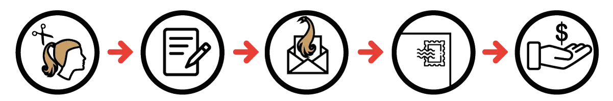 Fill out our online accompanying letter. Important information is name and address, telephone number, email and payment method. Decide whether you want to donate your hair to the American Cancer Society. Please also indicate how you came to www.sell-long-hair.com. (search engine, recommendation, hairdresser, press…)